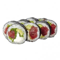 Ryż, nori, serek kremowy, tuńczyk bluefin, awokado, kapusta lodowa.