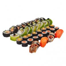 Green Dragon 8 szt California Tobiko-Tuńczyk 8 szt Hosomaki z krewetką 8 szt Hosomaki z łososiem 8 szt Nigiri z łososiem 2 szt Nigiri z węgorzem 2 szt
