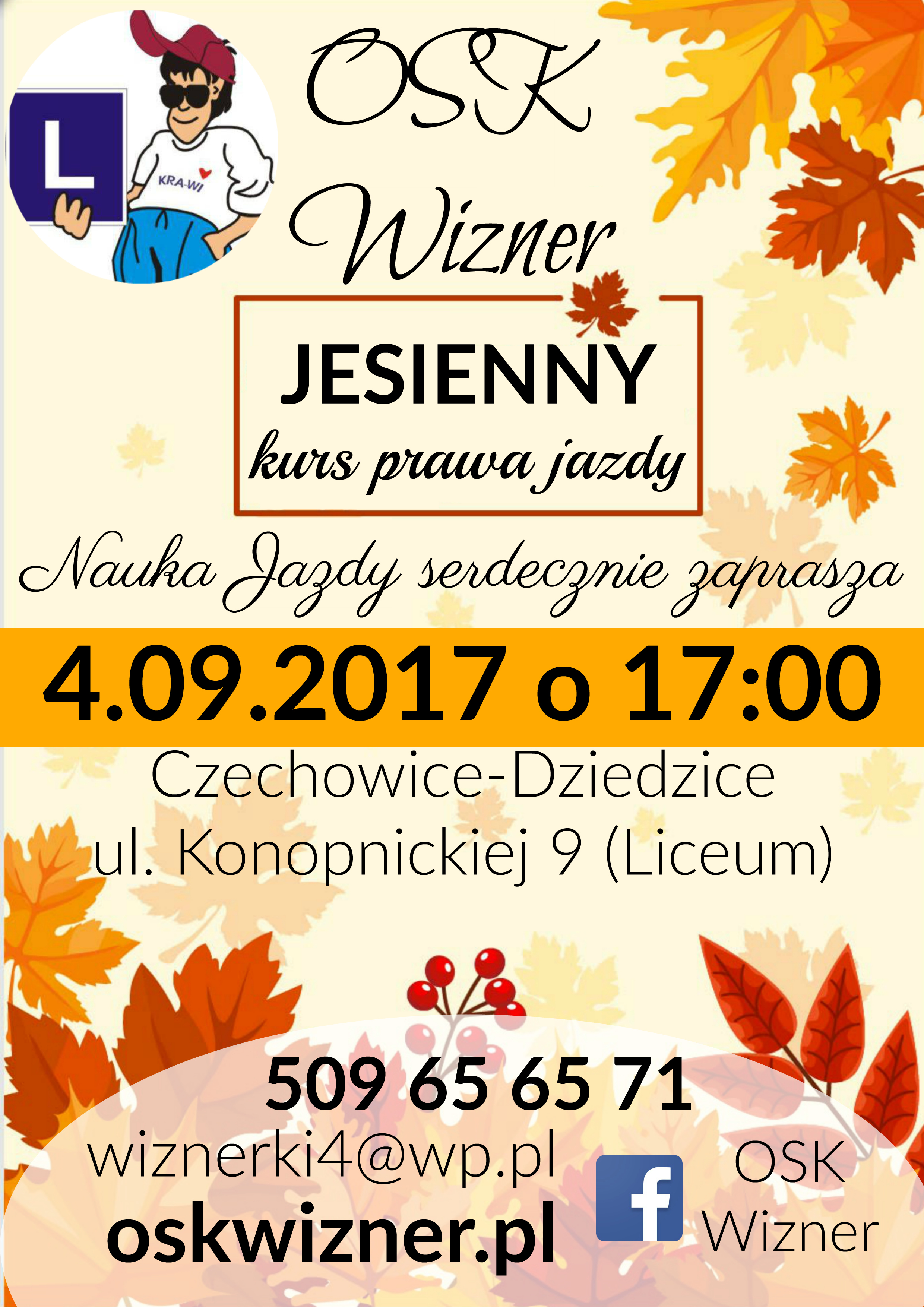 Aktualne terminy znajdziesz na naszym profilu na Facebooku: OSK Wizner