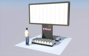 Przedstawiamy billboard z obciążeniem nad gruntem, na jednej zabudowanej nodze, w szerokim rozstawie, z tablicą 504x238cm lub 600x300cm.