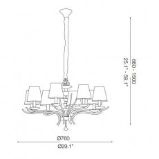 Rodzina lamp Pegaso. Metal Chrom lub Satynowany Mosiądz. Abażury z organzy. Dekoracyjne elementy z ciętego kryształu. Bogata rodzina lamp składająca się z kilku lamp wiszących, kinkietu, lampy podłogowej oraz lampek.