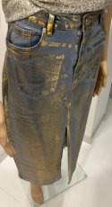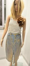 spódnica wloska złoty nadruk niebieska z rozcięcie 81