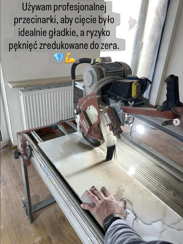 Usługa wykonywana jest przy użyciu profesjonalnego sprzętu renomowanych marek takich jak DeWalt oraz systemów do precyzyjnego cięcia płytek Raimondi.