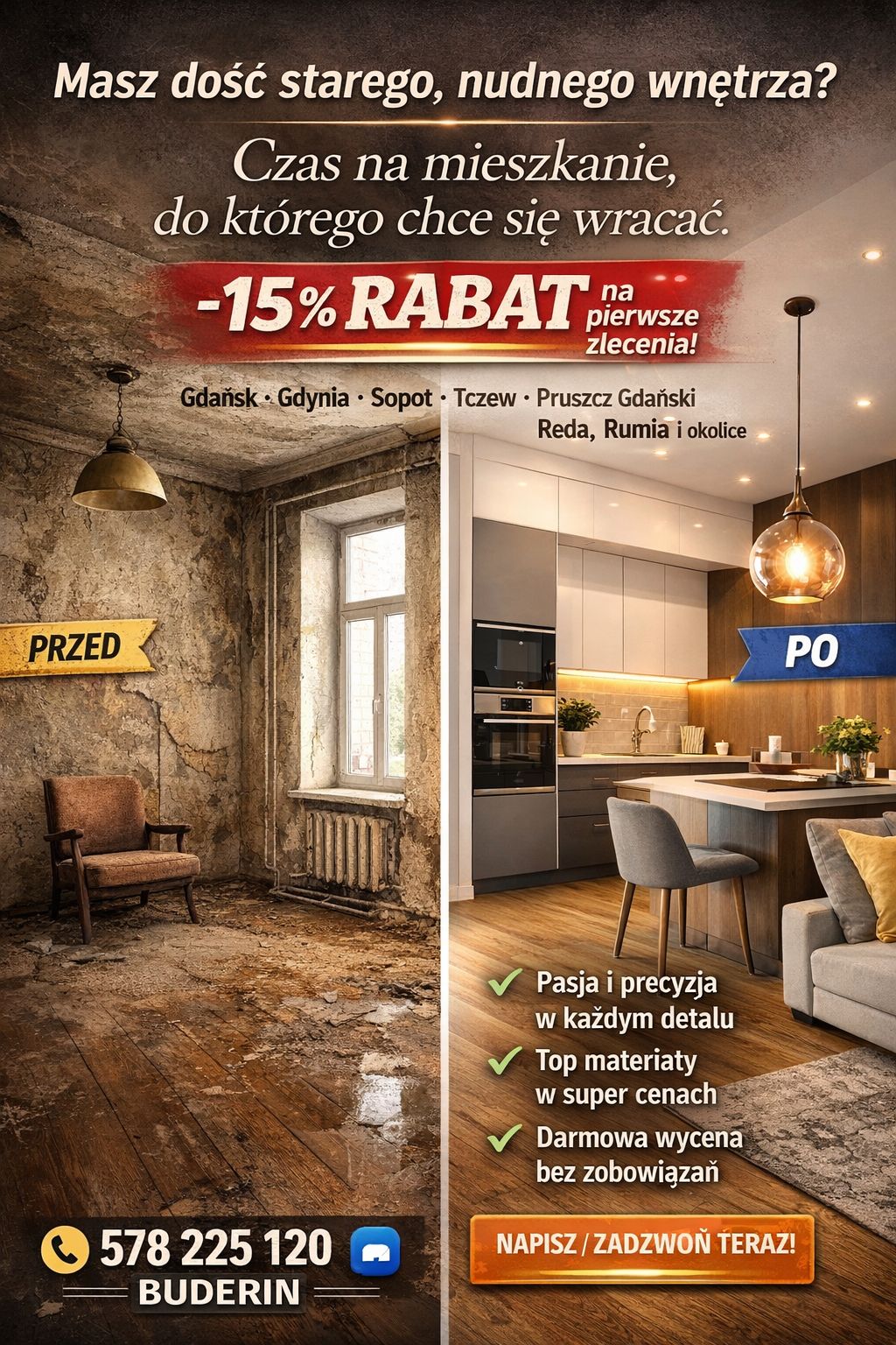 Jeśli planujesz remont lub wykończenie wnętrz, skontaktuj się z firmą BUDERIN.
