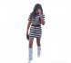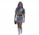 Komplecik w biało-czarne paski ,mini spódniczka, pod spodem spodenki ,bluzeczka wiązana z tyłu z niewielkim wycięciem ,oversize, Proponuję od S do L. Plecy finezyjnie wycięte. Materiał rozciągliwy.
