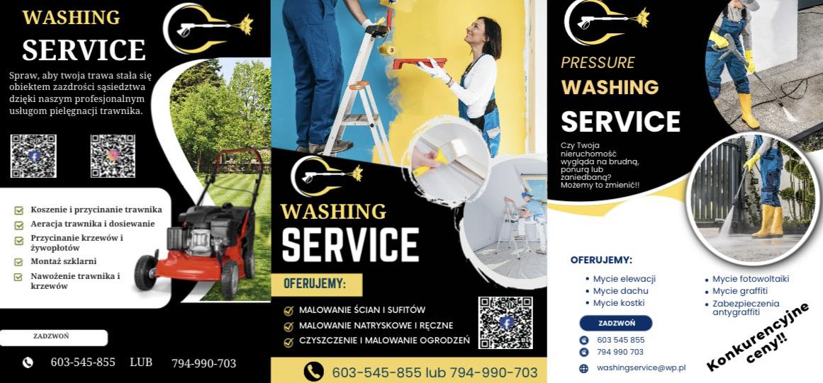 Jeżeli potrzebujesz pomocy przy domu, mieszkaniu lub ogrodzie, skontaktuj się z firmą WASHING SERVICE pan Robert Kamiński tel. 603 545 855 lub Michał Karnas 794 990 703.