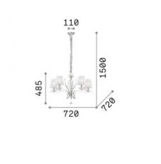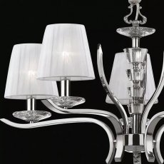 Rodzina lamp Pegaso. Metal Chrom lub Satynowany Mosiądz. Abażury z organzy. Dekoracyjne elementy z ciętego kryształu. Bogata rodzina lamp składająca się z kilku lamp wiszących, kinkietu, lampy podłogowej oraz lampek.
