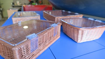 Opracowane w naszej firmie specjalne klipsy z zawiasem trzymającym klapę koszyka. Dowolny wymiar i kształt na zamówienie. Trzymanie klipsa bardzo mocne i uniwersalne do każdego rodzaju kosza wiklinowego czy plastikowego.