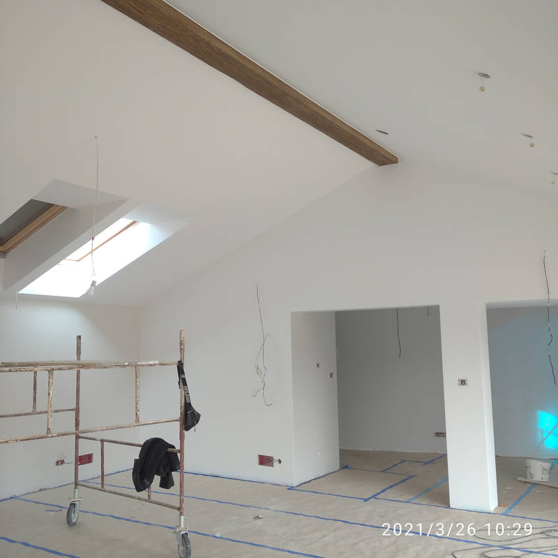Firma wykonuje pełne zabudowy skosów, ścianek działowych, sufitów oraz elementów niestandardowych dopasowanych do bryły dachu.