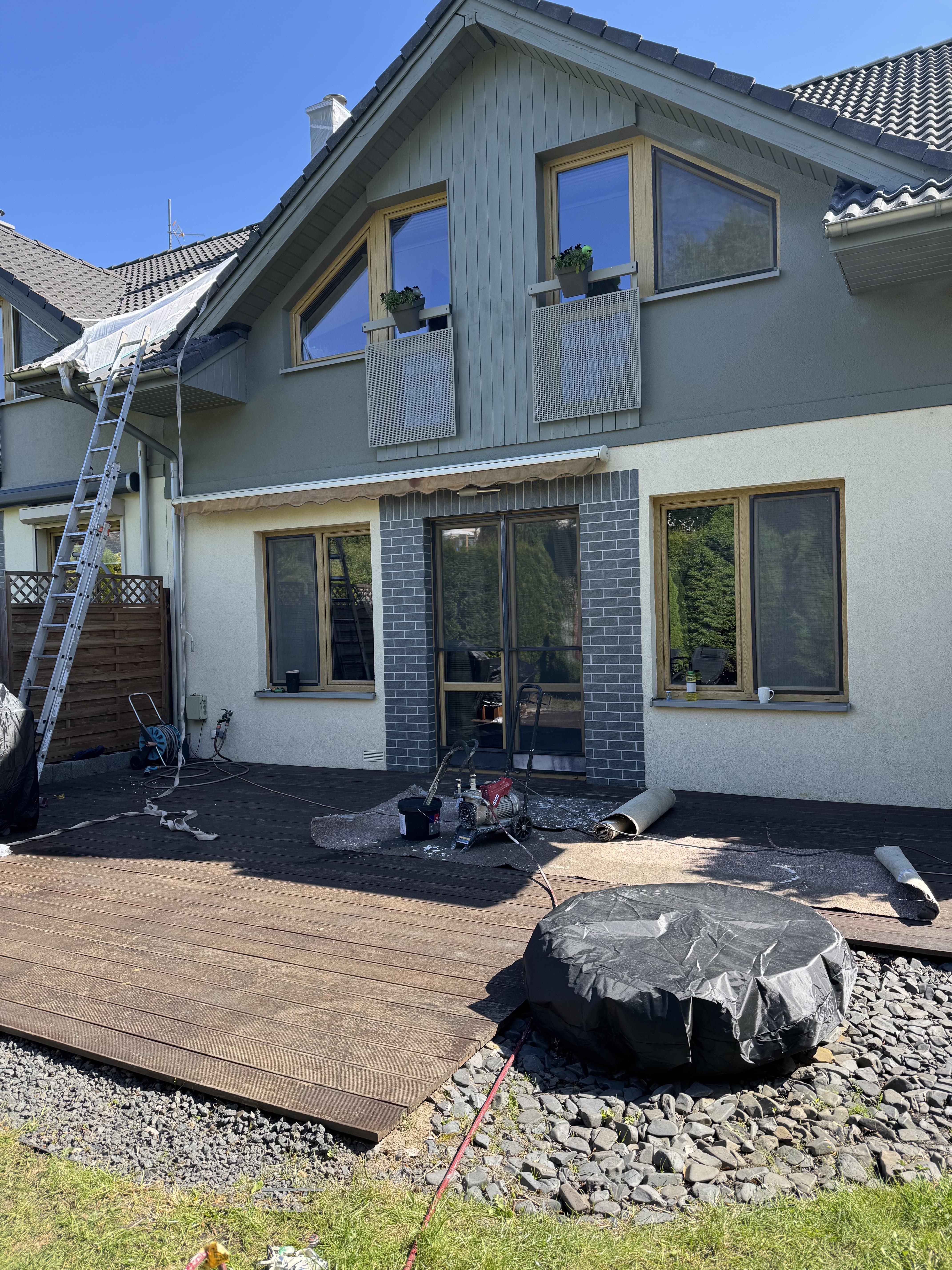Zabezpieczamy elementy stolarki oraz inne fragmenty budynku przed zabrudzeniem.