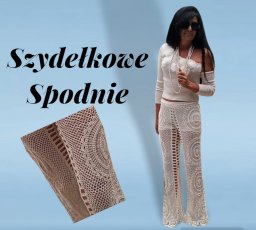 spodnie damskie ażurowe beżowe uniwersalne 37
