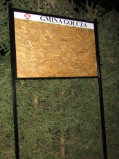 W celu podkreślenia jej przeznaczenia, proponujemy Państwu wykonania na tablicy nagłówka z nazwą sołectwa i herbem gminy.