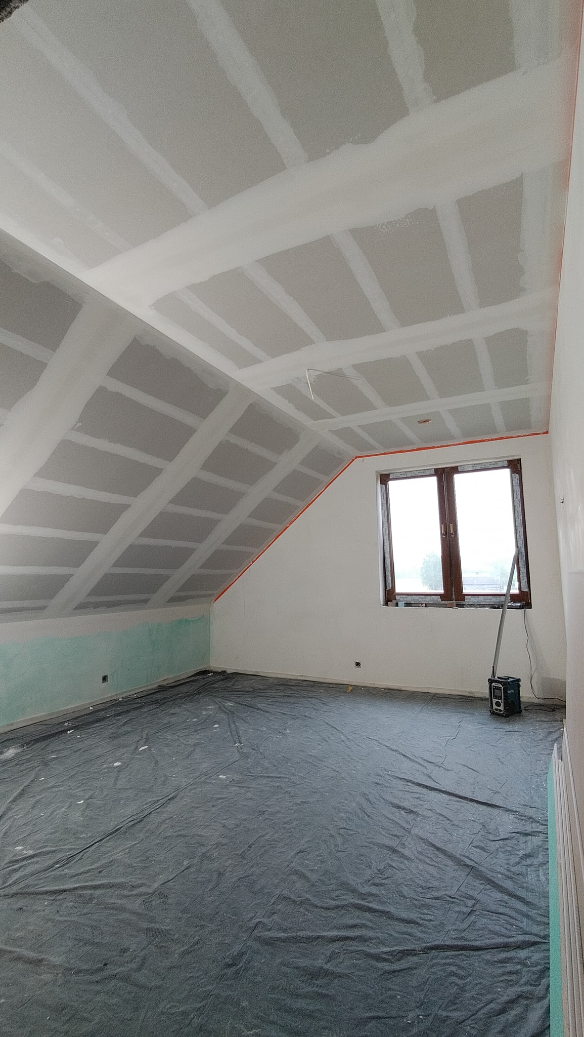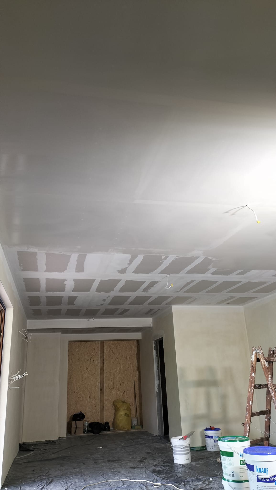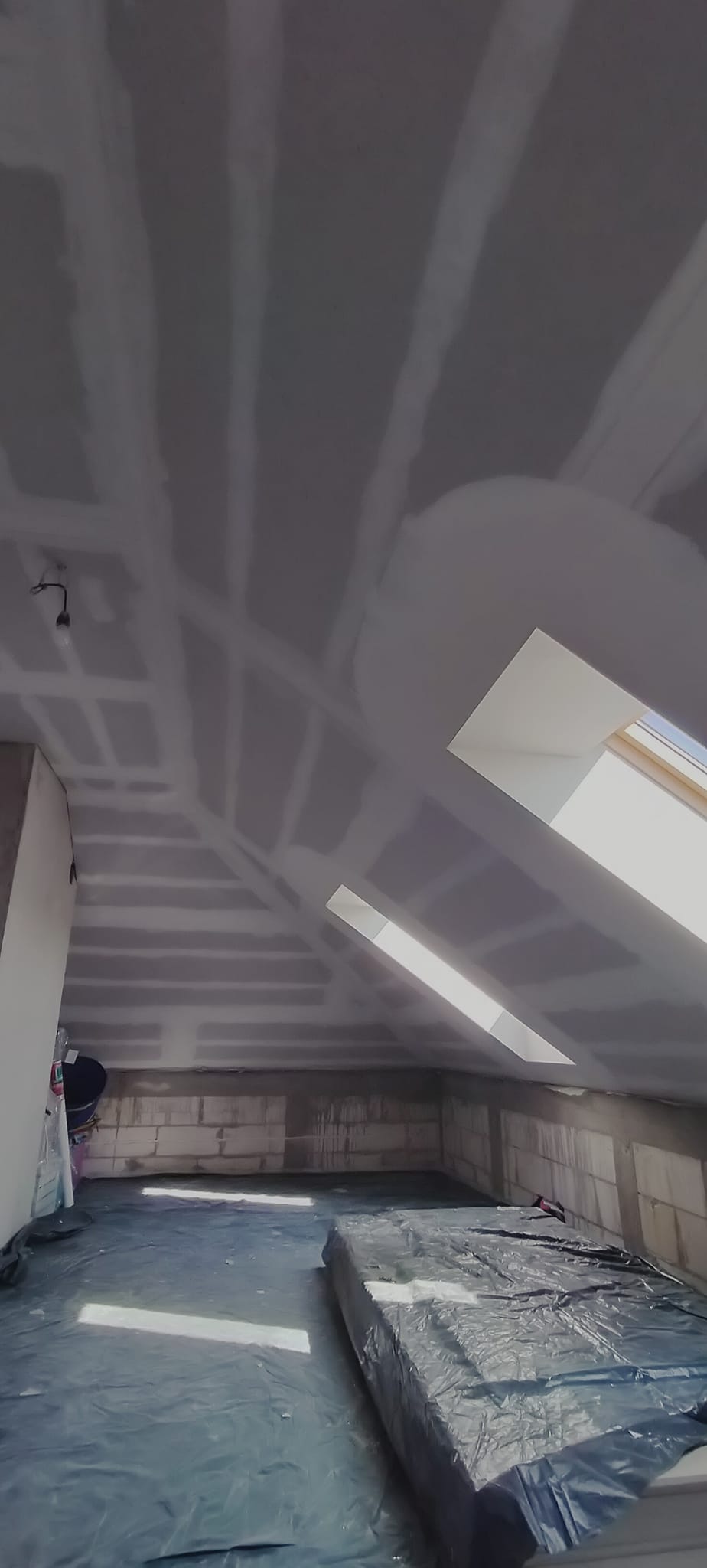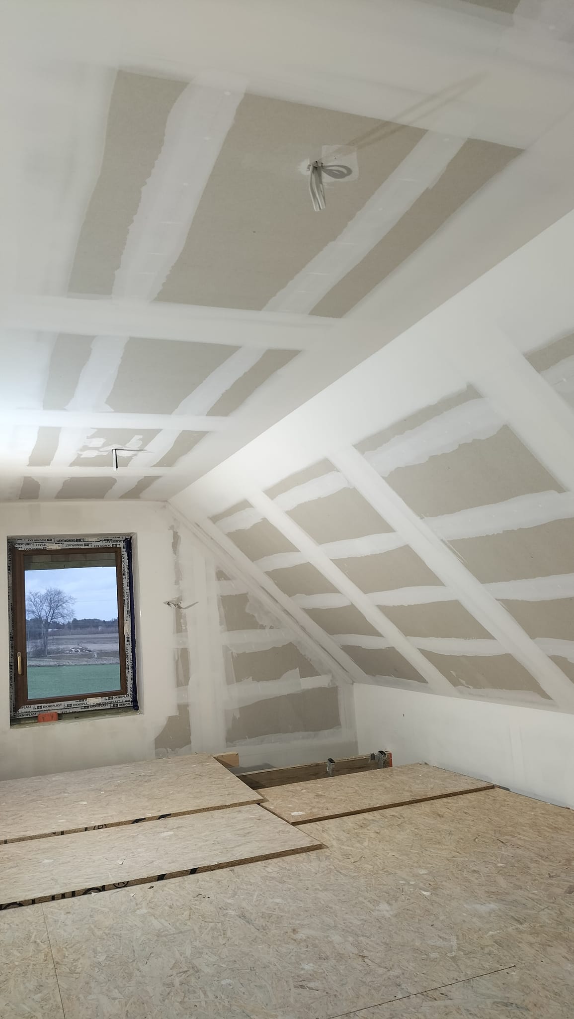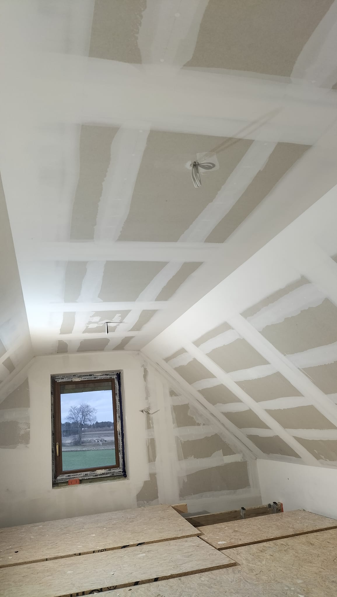 Kolejnym etapem jest montaż płyt G-K oraz wykonanie prac szpachlarskich i wykończeniowych.